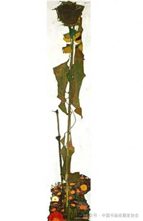 ? 席勒植物画的风格也表现出了对个人情感的探究。画的虽然是向日葵,席勒却将植物人格化。太阳花失去了原有的生命力,只留下干枯颓败的身体,直直僵挺地站立着。