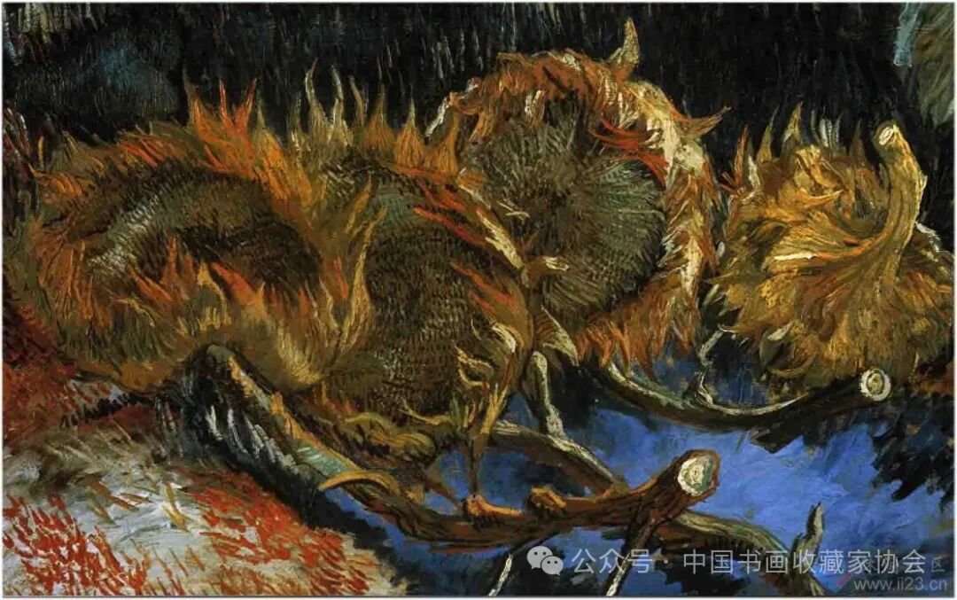 ? 1887年8-9月,当秋天来临时,蒙马特的花园满是即将凋谢的向日葵。梵高采摘了一些回到画室,创作了《被剪下的向日葵》,用色偏暗。在这些向日葵的画法中,他加入了非常多的技法。高更敏锐地发现了梵高的向日葵里充满了荷兰风格但又具备印象派风格的独特画风,因此给予了高度的认可。
