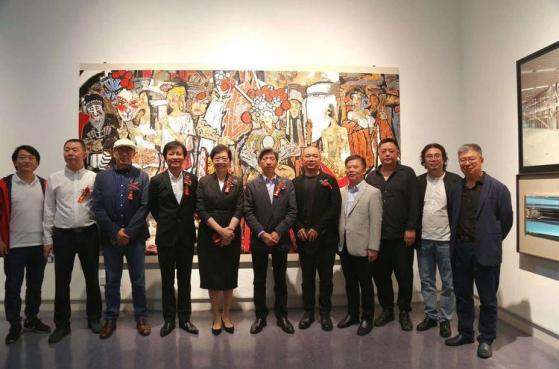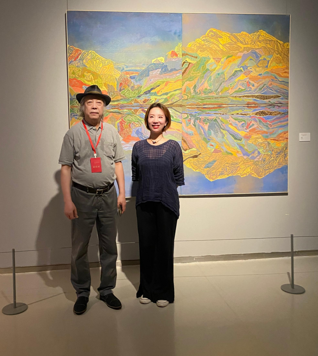 与中国美协综合材料绘画艺委会名誉主任胡伟先生在作品前合影