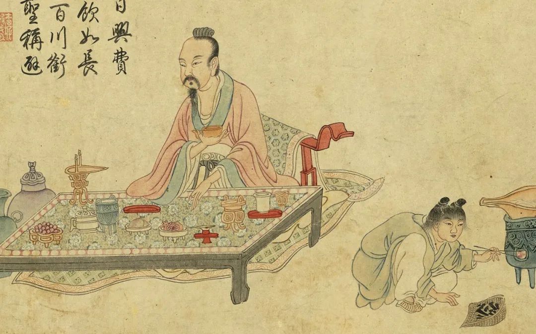 接着出现的是李适之。他于天宝元年(742 年),代牛仙客为左丞相,雅好宾客,夜则燕赏,饮酒日费万钱,豪饮的酒量有如鲸鱼吞吐百川之水,一语点出他的豪华奢侈。然而好景不长,开宝五载适之为李林甫排挤,罢相后,在家与亲友会饮,虽酒兴未减,却不免牢骚满腹,赋诗道:“避贤初罢相,乐圣且衔杯,为问门前客,今朝几个来?”(《旧唐书·李适之传》)“衔杯乐圣称避贤” 即化用李适之诗句。“乐圣” 即喜喝清酒,“避贤”,即不喝浊酒。结合他罢相的事实看,“避贤” 语意双关,有讽刺李林甫的意味。这里抓住权位的得失这一个重要方面刻画人物性格,精心描绘李适之的肖像,含有深刻的政治内容,很耐人寻味。三个显贵人物展现后,跟着出现的是两个潇洒的名士崔宗之和苏晋。崔宗之,是一个倜傥洒脱,少年英俊的风流人物。他豪饮时,高举酒杯,用白眼仰望青天,睥睨一切,旁若无人。喝醉后,宛如玉树迎风摇曳,不能自持。杜甫用 “玉树临风” 形容宗之的俊美丰姿和潇洒醉态,很有韵味。接着写苏晋。司马迁写《史记》擅长以矛盾冲突的情节来表现人物的思想性格。杜甫也善于抓住矛盾的行为描写人物的性格特征。苏晋一面耽禅,长期斋戒,一面又嗜饮,经常醉酒,处于 “斋” 与 “醉” 的矛盾斗争中,但结果往往是 “酒” 战胜 “佛”,所以他就只好 “醉中爱逃禅” 了。短短两句诗,幽默地表现了苏晋嗜酒而得意忘形,放纵而无所顾忌的性格特点。