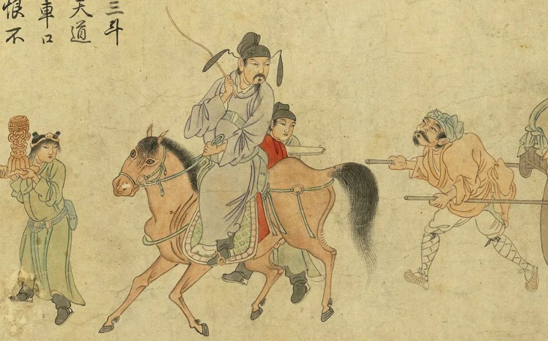 八仙中首先出现的是贺知章。他是其中资格最老、年事最高的一个。在长安,他曾 “解金龟换酒为乐”(李白《对酒忆贺监序》)。诗中说他喝醉酒后,骑马的姿态就象乘船那样摇来晃去,醉眼朦胧,眼花缭乱,跌进井里竟会在井里熟睡不醒。相传 “阮咸尝醉,骑马倾欹”,人曰:“箇老子如乘船游波浪中”(明王嗣奭《杜臆》卷一)。杜甫活用这一典故,用夸张手法描摹贺知章酒后骑马的醉态与醉意,弥漫着一种谐谑滑稽与欢快的情调,惟妙惟肖地表现了他旷达纵逸的性格特征。