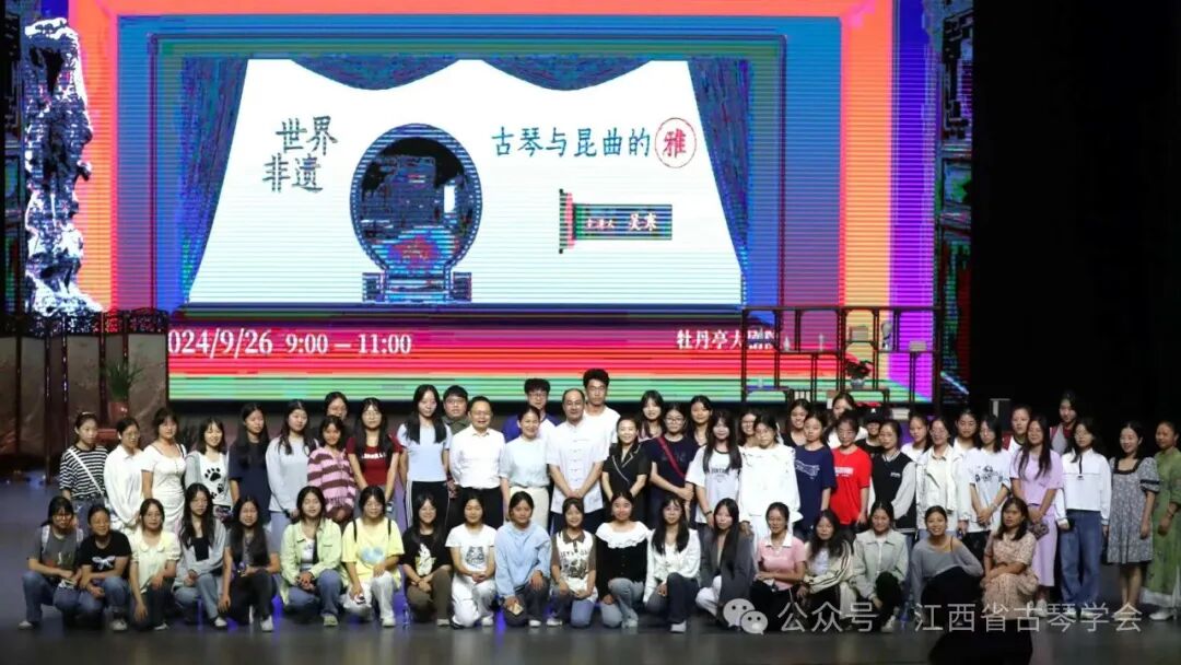 古琴名家音乐会在江西省古琴学会集体合奏的《牡丹亭·皂罗袍》中拉开帷幕,《流水》《平沙落雁》《白雪》《渔樵问答》《阳关三叠》等12首琴曲分别由赵梦瑶、海月、吴明涛、洪辰、池非颖、林法、韩杰、高洪斌、周通生、梁惠君、吴寒、孙鸿燕等琴家依次奏响,唐代“玉玲珑”和宋代“松风”这两床千年国宝级古琴分别演奏了《白雪》和《渔樵问答》,为观众带来了难得的听觉体验,并向“2024汤显祖国际戏剧交流月”献礼。9月26日上午,一场以“世界非遗--古琴与昆曲的雅”为主题的古琴文化讲座在“牡丹亭大剧院”举行,为来自各学校的师生们送来了一场内容丰富、蕴含文化底蕴的文化与艺术相融的视听盛宴。讲座由抚州市文旅局副局长陈宁广主持。讲座中,古琴文化研究学者吴寒从“何为古琴”、“何为昆曲”、“何为雅”、“古琴与昆曲之雅”四个方面深入浅出地讲述了古琴的发展历史和昆曲蕴含的丰富文化内涵。他表示,古琴与昆曲都是中国传统艺术的瑰宝,二者在“雅”的追求上有着共通之处,均追求内敛含蓄之雅。古琴的音色清幽淡雅,能够烘托出昆曲演唱的细腻情感;而昆曲的曲调婉转悠扬,又能丰富古琴演奏的表现力。两者相互融合,相得益彰,共同体现了中国传统艺术的高雅境界。