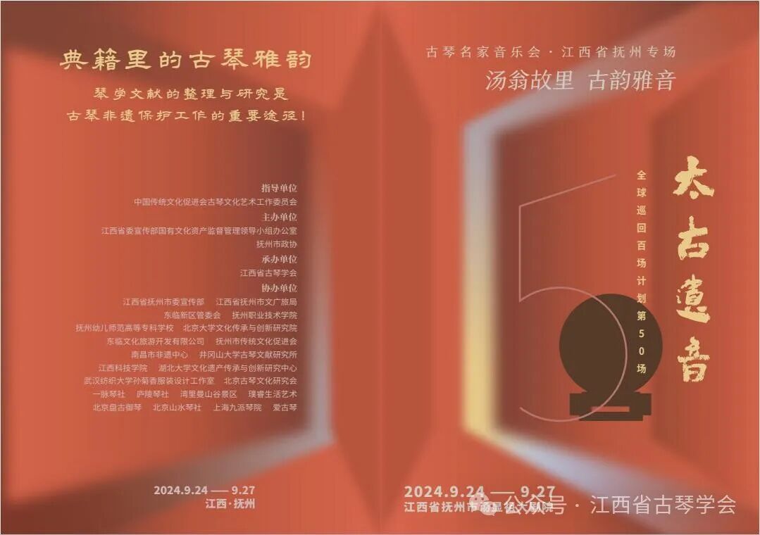 其中“汤翁故里 古韵雅音--古琴名家音乐会抚州专场”是庆祝第50场次“百场半程纪念”主题古琴音乐会,由中国传统文化促进会古琴文化艺术工作委员会指导,江西省委宣传部国有文化资产监督管理领导小组办公室、江西省抚州市政协、江西省抚州市委宣传部主办,江西省古琴学会承办,在抚州汤显祖大剧院隆重举行。江西省政府党组成员陈小平,原文化部副部长周和平,抚州市委书记魏晓奎,江西省外办主任范勇,中国非遗保护协会副会长兼秘书长张雅芳,以及江西省抚州市领导贺喜灿、漆海云、郭新春、赵荣贵、吴宜文、黄智迅、谭小平、刘忠华、戴晓文、伍旭鸿出席。