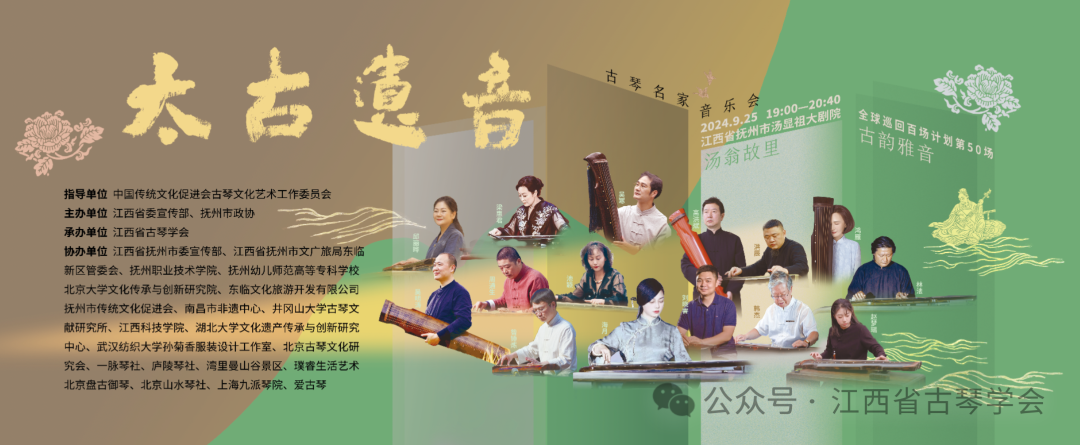 本次系列活动是100场次的“中点”第50场次,经江西省古琴学会海月会长策划与省琴会承办,得到了江西省抚州市文广旅局、东临新区管委会、抚州职业技术学院、抚州幼儿师范高等专科学校、北京大学文化传承与创新研究院、东临文化旅游开发有限公司、抚州市传统文化促进会、南昌市非遗中心、井冈山大学古琴文献研究所、江西科技学院、湖北大学文化遗产传承与创新研究中心、武汉纺织大学孙菊香服装设计工作室、北京古琴文化研究会、一脉琴社、庐陵琴社、湾里曼山谷景区、璞睿生活艺术、太古琴书院、北京盘古御琴、北京山水琴社、上海九派琴院、爱古琴等单位共同协办,不仅为临川人民奉上了一场古琴音乐盛宴,更以古琴文化巡礼向“才子之乡、文化之邦”临川致敬。